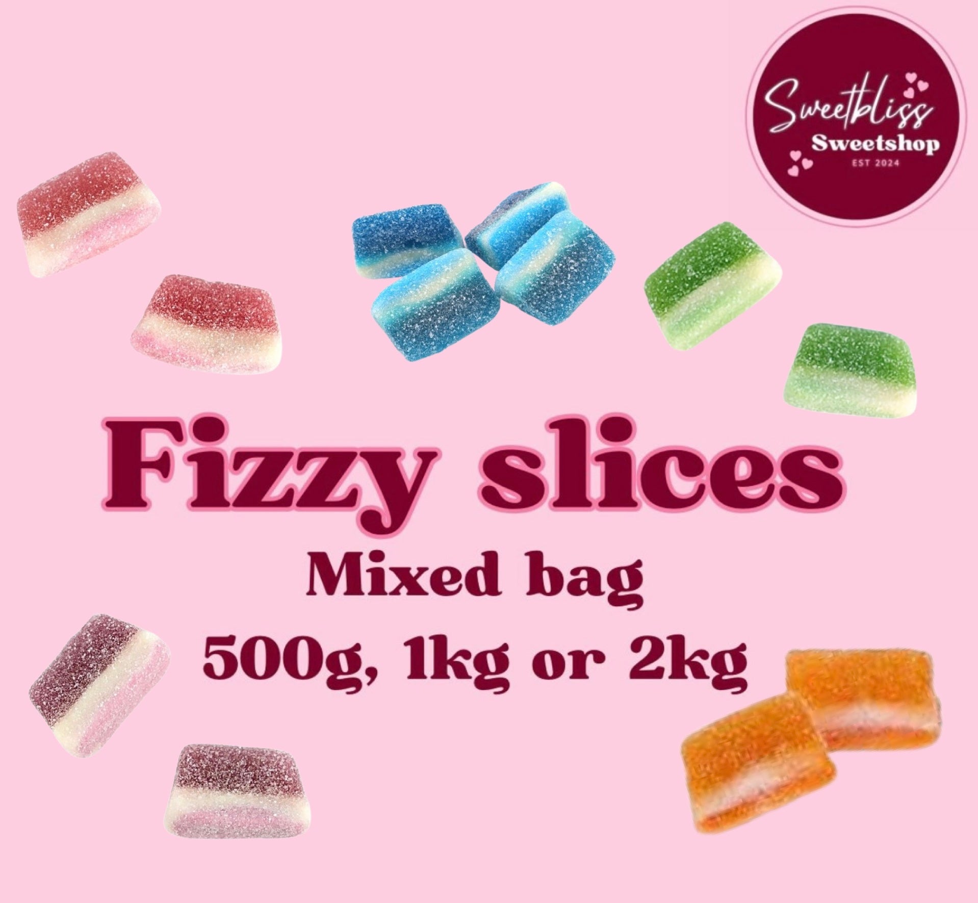 Fizzy/Sour Slices mix bag in three sizes 500g, 1kg or 2kg